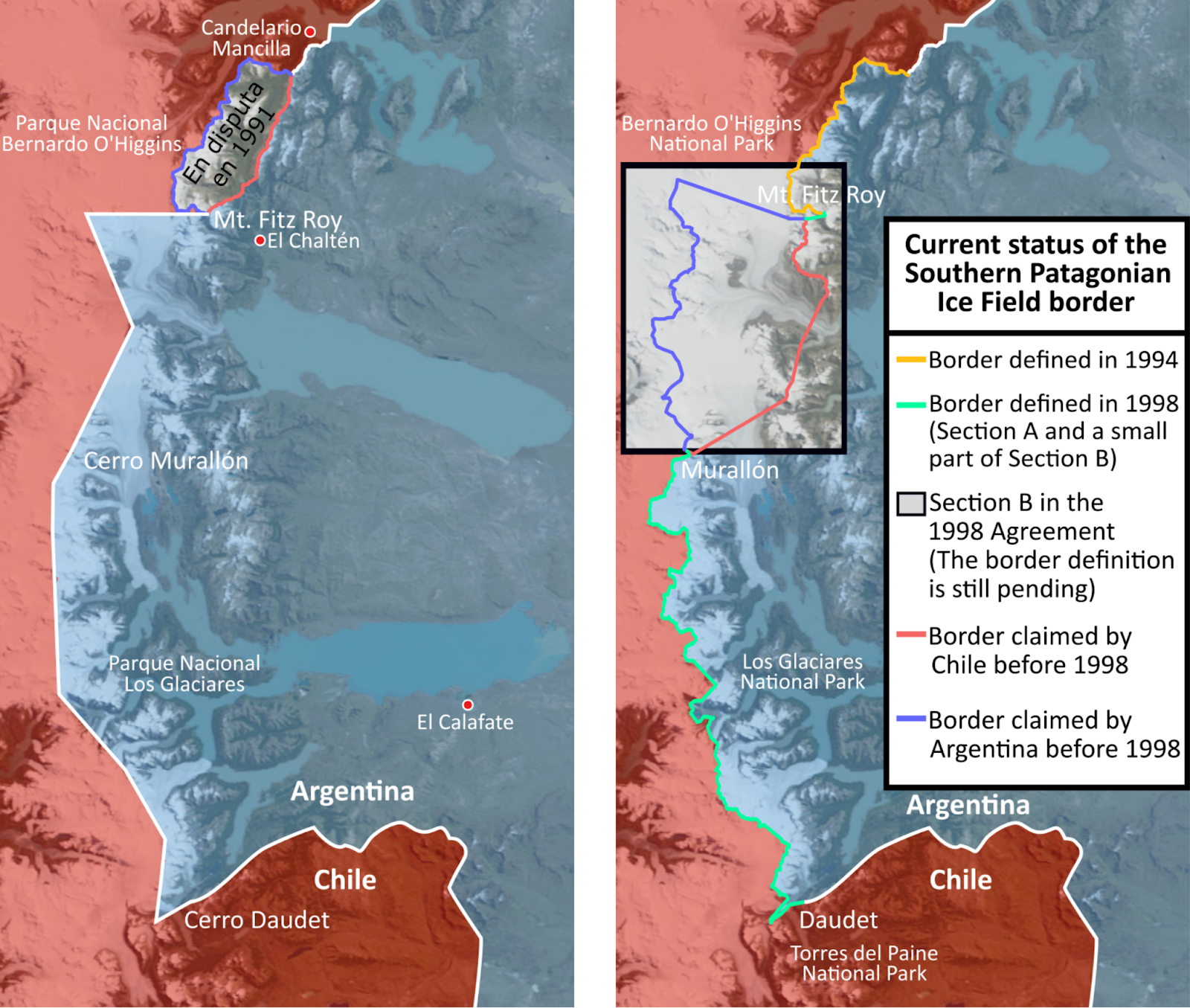 Over the years, numerous meetings, treaties, and proposals took place. The most recent were in 1991, when both countries agreed to draw a polygonal line to equitably divide the claimed territories (which was rejected by both congresses), and in 1998, when the original 1881 Treaty was ratified and properly mapped. However, a key section in the northern part of the icefield remains undefined, which is the current situation.